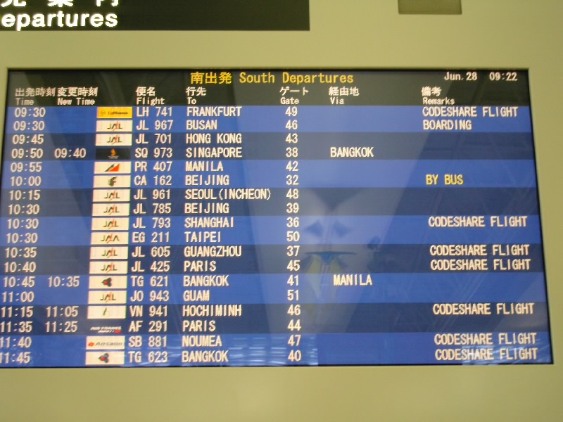 6月28日、夏休みでもないGWでもない何でもない月曜日・・・なのに、どうして関空はこんなに混んでいるのっ???チェックインするのも出国するのも長蛇の列。今まで幾度となく関空を利用してきたけど、今日が最高に混んでいる感じ。せっかく早目にきて関空探検をしようと思っていたのに全然時間がなかったよ。とりあえず出国審査を経て第一の目的。免税店でElizabeth Ardenの香水を買う。今使っている試供品が無くなりかけていて、同じのが欲しかったんだよね。何の香りかは分からないけど、とてもいい香りでお気に入り。お店の人が教えてくれた。「緑茶ですよ」って。なんだ、食べ物(飲み物だけど)の匂いかと思ったら、ほんの少しガッカリだな・・・。2本セットで1本分の値段だって!ちょっと得した気分でゴキゲン♪になったとこで出発ゲートに向かう。
