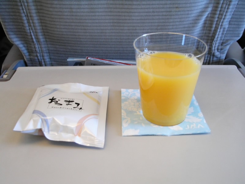 そろそろ離陸・・・と思うと眠たくなってくる。いつもそう。いつも気付くと空の上。いつだったか羽田行に乗った時には気付いたら既に羽田の滑走路を走っていたこともあったっけ。・・・ふと目が覚めるとドリンクサービスが始まっていた。とりあえずオレンジジュースとJALのおつまみを、もう飽きたなぁと思いながら食べた。そう、最近JALを利用しての旅行が続いてて、ちょっと飽きたな~って思ったりしている。でもマイレージを貯めるためには、そーも言ってられないんだけどね。