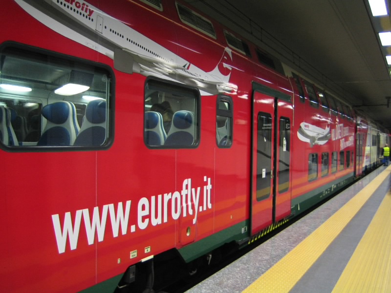 入国審査の際、イタリア語で何か聞かれないかとどきどきしていたラオターずだが、特に問題なく手続きが進み、無事にイタリアの人となった。預けた荷物を受け取るまで、ちょっと時間があるのでキャッシングをしておこうと思い、近くにあったキャッシングマシーンへ。うちときむ氏は特に問題なく出来たのだが、なぜかJだけできない。キャッシングマシーンの機械が変わるとできるかな?荷物を無事に受け取り、だれもいない税関をぬけて到着ロビーへ。再度キャッシングマシーンにチャレンジするが、Jのカードはやっぱりだめ。インターナショナルな引き出しはできないとのメッセージがでるのだ。コーポレートカードを使っているからだろうか、でもだめじゃん。困るなあ。まあ4人いるからいいものの、一人旅でキャッシングに頼るつもりならば大変だ。では、マルペンサエクスプレス乗り場へ行きましょう。30分に一本の電車がちょうど行ったばっかりだ。チケットを買い(@11E)、きむ氏はすかさずヤニ補給に走る。Jは日本円の両替をするために、再び空港の到着ロビーへ。