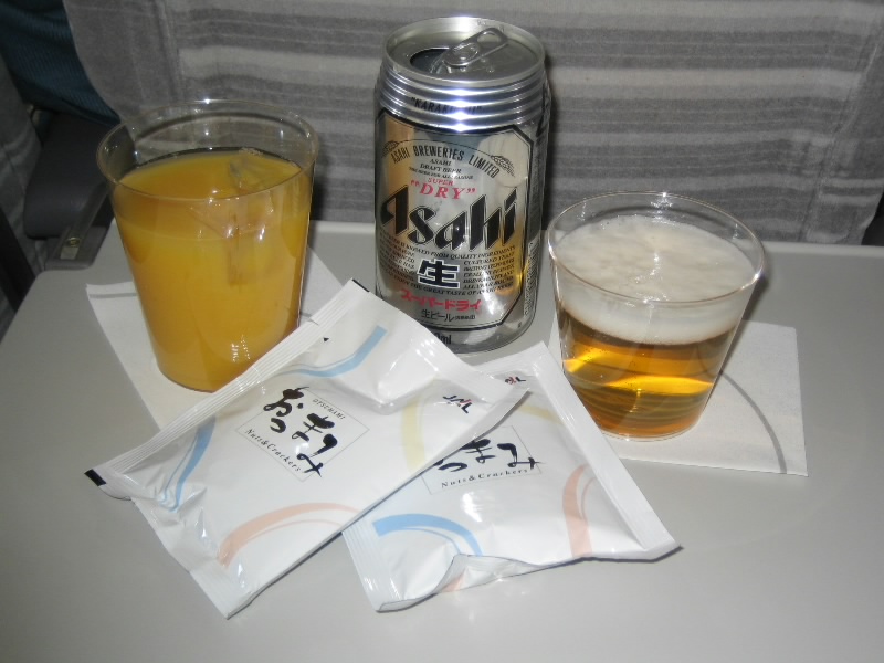 30分くらいたったころ、搭乗手続き開始。ファーストやビジネスクラスだけでなく、クリスタル会員も優先登場ができるのでとっとと乗り込む。席を探していると気づいたのだが、なんとこの飛行機は全体の半分以上がビジネスクラス。さすがニューヨーク線、ビジネスクラスの利用客が多いのだ。どうりで座席の事前指定枠が少なかったわけだ。ううう、どうせエコノミーですよー。まあよい、今回の旅の最大の目的は、はっきり言って長距離のマイルを一気に稼ぐことにあるのだから。さあ、いよいよ出発だ。JL006便は、定刻を少し遅れ、ニューヨークに向かい離陸した。風の影響だろうか、到着までの予定時間が1時間程度早まるらしい。これはラッキーだ。まあゆっくりとゲームなり音楽でも楽しもうか・・・MAGIC1かよ!なんということだ、ゲームの一番しょぼいMAGIC1機材だ。ニューヨーク線だから、当然のように最新のMAGIC3だと思っていたのに・・・大ショック。うーん、これで長距離はつらいなあ。GWのローマ行きのときは古い機材でもしかたないか、とも思っていたのだが・・・とにかくビールで乾杯だ。しかたがない、ゆっくり過ごすとするか。