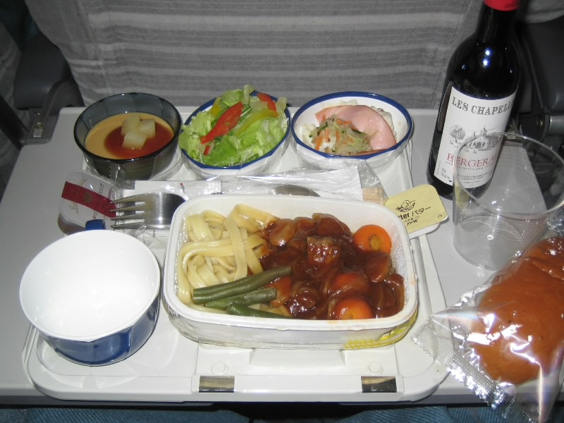 しばらくして機内食タイム。さすがにもう飽きぎみだが、洋食のビーフシチューと、和食の西京焼きをワインとともに食す。結局完食するんだけどね。さて、ここからがのんびりタイム。MAGIC1で昔のトリビアやってたので見るが、一本分なので40分ほどで終了。ハイジは楓ちゃんだ。さて寝ますか。いまいち寝られないなあと思っていたが、そろそろ起きようと思ったときに地図を見ると、そろそろ北米大陸に着くかというころ。出発から7時間近くたったことになる。けっこう寝たな。