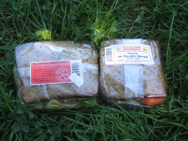 あとはスパイスとか、オイルサーディンとか、サラミとか、トルティーヤとか、家でのつまみをいろいろと買いましょう。そして最後に朝ごはん。サンドイッチを2種類選ぶ。サーモンのと、ターキーのにしましょうか。これでしめて75.18ドル、例の50セントコインも2枚とも使えたし、他の小銭もきれいに使いきれたので財布が随分と軽くなった。両手に荷物をかかえ、一旦ホテルに戻る。荷物をおいて、出かけますか。天気もいいし、セントラルパークへといきましょう。ぶらぶらと10分くらい歩くと、セントラルパークの入口に到着。