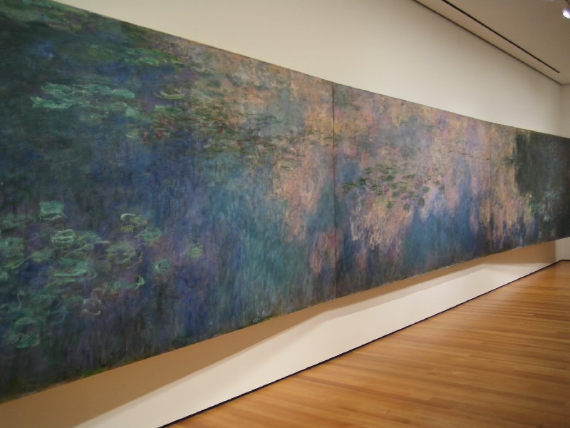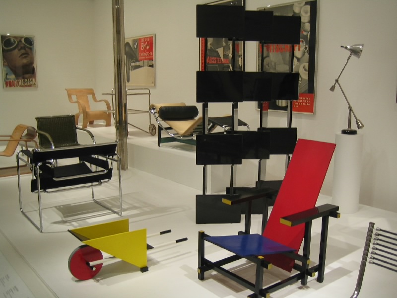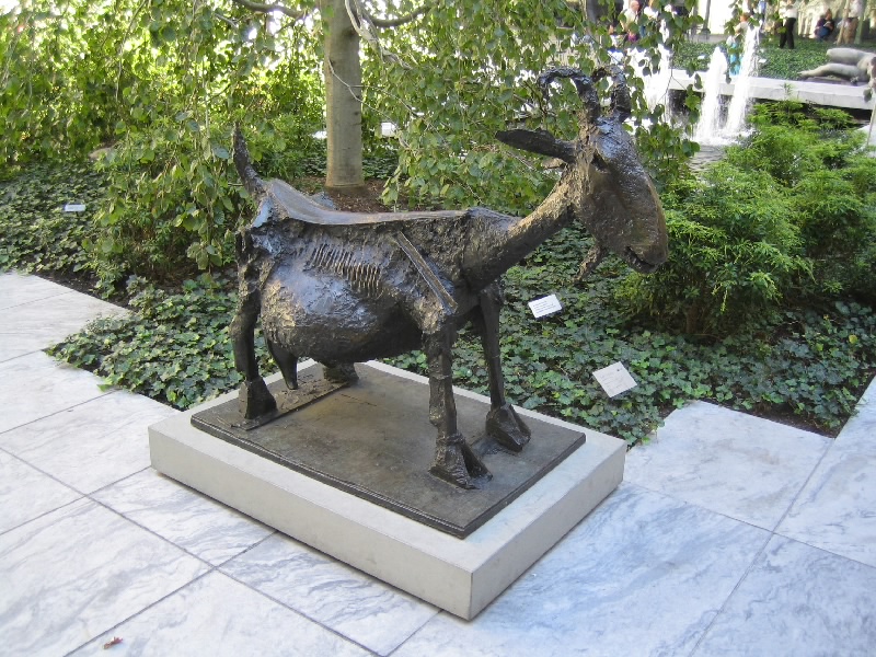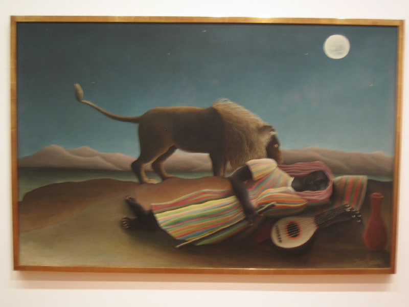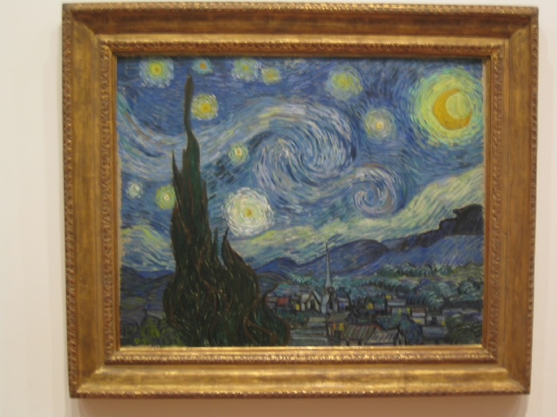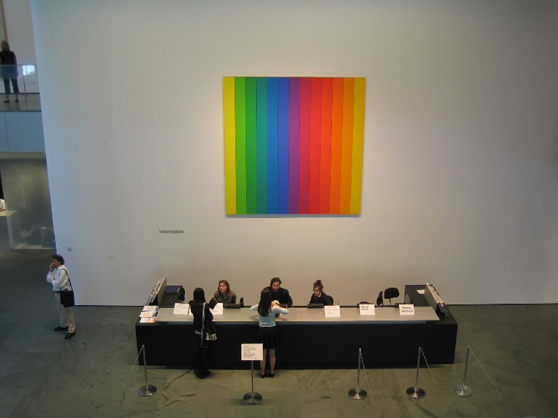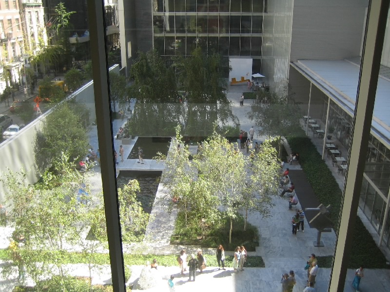 さて、では昨日入れなかったMOMAに行きましょう。公園を出て、しばらく歩くとカーネギー・ホール。その向こうには前回巨大なパストラミサンドを食べたカーネギー・デリ。そしてMOMA到着。今日は開いているね。ここは2004年の11月に日本人建築家による改装が行われたばかりで、ガラス張りの近代的な外観だ。中に入り、チケットをゲット(@$20)。まずはエレベーターで、一気に最上階の6階まで。ここから順番に見ていきましょう。絵画や彫刻、写真や建築デザインなど、近現代のコレクションがたくさんと展示されている。ルーブルやオルセーのような美術館とはまた趣の異なる展示物だし、光や吹き抜けなどをうまく使った空間が心地よい。3階にはいろいろなデザインの椅子があり、こういった展示もなかなかおもしろい。一階までおりると、中庭に出ることができ、そこはスカルプチュア・ガーデンということで、いくつかの彫刻が置かれている。ベンチもあるので、みんなのんびりと過ごしているようだ。1階にはショップもあるのでここでいくつか絵葉書をゲット($3.68)。ゆったりと過ごすことができて、満足です。