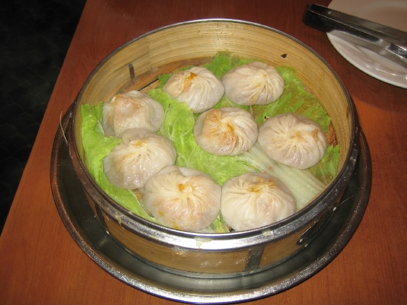 さあ、おひるごはんに行きましょう。レキシントンアヴェニューの51丁目駅でメトロの1日券をゲットし(@$7)、一気にCanal Street駅まで。地上にでると、そこはチャイナタウン。漢字の看板や中華風の食材、蒸篭から立ちのぼる湯気。摩天楼のニューヨークから、一気に中国に来たようだ。ここへ来た目的は、蟹の小籠包で有名な鹿鳴春。駅から数分歩き、大通りから少し入ったところにお店があった。お昼時は行列が出来るらしいが、もう2時を過ぎているのですぐに入ることができた。席に着くといきなり「小籠包は食べるか?」と聞かれたのでもちろん「食べる!」と答えた。人気メニューでもあるし、蒸かす時間がかかるのでまず聞くのだろう。あとは何にしようかと思ったが、「空芯菜あるかなあ」ってボソッと言ったら「空芯菜あるヨ」。「焼きそば食べる?」と言ったら「堅焼きそばおいしいヨ」と結局日本語でOK。空芯菜の炒め物と、海鮮堅焼きそばをオーダー。烏龍茶を飲んでいると、待つほどの時間もなく小籠包登場。ひとつの蒸篭に8コ並んでいる。これは・・・でかいぞ。台湾で食べる感覚で蒸篭を2つ頼んだが、小籠包1コが随分と大きい。熱いし、一口ではとても無理。というわけで、蓮華を使いながら食べる。熱いが・・・これはうまい。蟹の風味が口いっぱいにひろがり、肉汁もたっぷりで、うまいうまい。ただちょっと大きいのと、皮が厚めなので4個ずつ食べたらそれだけで結構満腹になりそうだ。続いて空芯菜の炒め物。ある程度想像はしていたが、かなりの量だ。でも久しぶりにしっかりと野菜を取れるのでうれしい。そして海鮮堅焼きそば。これは・・・1人前?多すぎでしょう。イカにエビとたっぷりの緑黄色野菜。それはいいのだが、堅焼きそばにしては太すぎる大量の麺。これは食べきれないなあ。でも野菜や海鮮はおいしいので、しっかりと栄養補給しましょう。結局小籠包は全部食べたものの、空芯菜と焼きそばはかなり残してしまった。アメリカでは、中華を頼んでもやはり量が多くなってしまうのだ。もったいないよね・・・チップ込みで39.25ドル、満腹です。