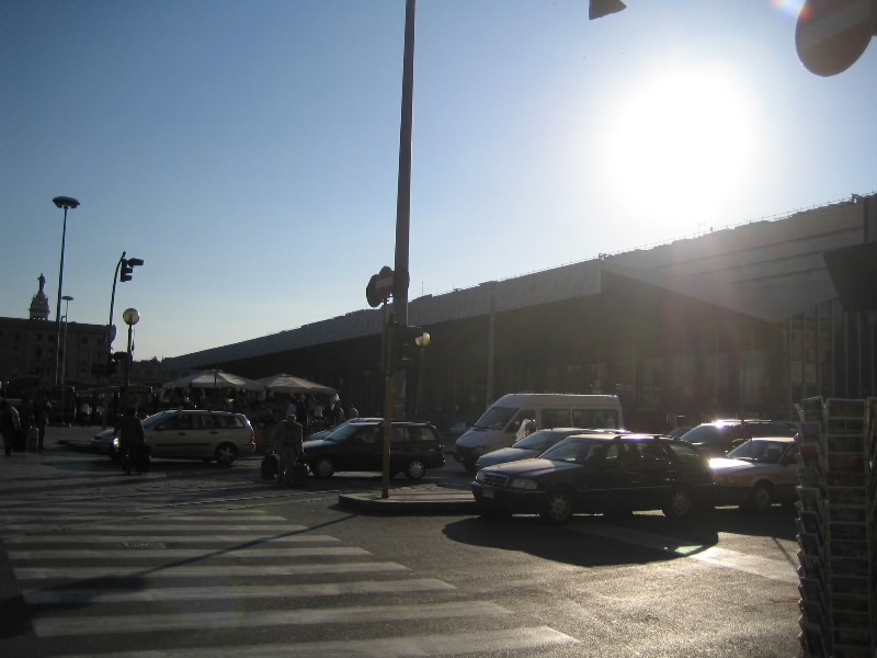 荷物をまとめ、チェックアウト(350E)。テルミニ駅までは近いので楽だ。でも空港行きの急行は、テルミニ駅の一番奥。正面入り口からは数百メートルもあるように感じる。いったんなぜ、こんな遠いところに作るのだろう。荷物の多い人や、予想外に遠くて乗り遅れる人などいると思うのだが。ま、特に考えてないんだろうね。乗り場の地下にあるキオスクでチケットをゲット(@9.5E)。早速乗り込む。ほどなく空港急行・レオナルドエクスプレスはフィウミチーノ国際空港に向け、出発した。気持ちのいい晴天の中を、順調に走る。途中、左手に高速道路が見えた。あれが初日にアルベロベッロに向けて走った道なんだね。もうずっと昔のことのようだ。