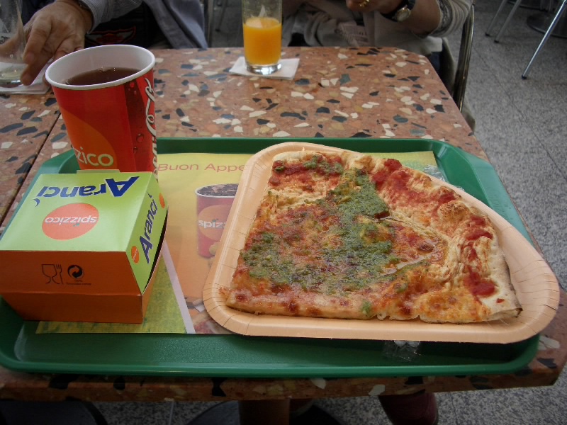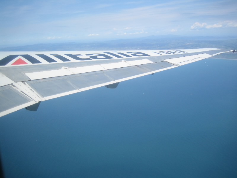 空港に着き、早速チェックイン。余裕をもって、出発の2時間前に来ているので何の問題もないだろう。チケットとパスポートを6人分渡し、しばし待つ。なかなか手続きが終わらないぞ。なんだ?係りの人が画面とにらめっこで、なんだかしかめ面だ。なんだ?そして数分後、ようやくチケットをもらったのだが・・・なんとローマ〜ミラノ間がオーバーブッキング。本来乗る11時05分の便が既にいっぱいで乗れず、次の13時05分の便になるとのこと。東京〜大阪間のように本数の多い路線なので、その先のミラノ〜大阪便には十分間に合うのだが、とはいえそんなに余裕はない。ミラノの免税店やカフェでのんびりしようと思っていたのに・・・ローマでの待ち時間はあくまでも国内線エリアでの待ち時間なので、お店やカフェがあまり充実はしていないのだ。うーん、せっかく早めに来たのに、なぜなんだろうね。とはいえどうしようもないので、カフェでパニーニやピザを食べたり、お土産やさんでチョコレートなどを買ったりと、異常に長いローマの待ち時間を過ごす。そして定刻通りに13時過ぎ、ミラノに向けて出発した。