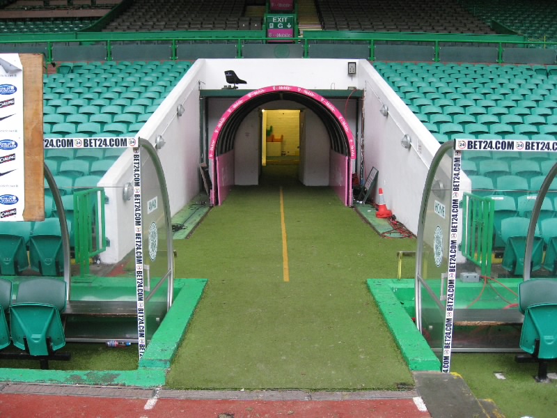 一方通行が多いのか、何度か曲がりながら街を抜ける。しばらくすると大通りにでた。しばらく進み、Bridgeton駅を通過。そのまま真っ直ぐ走り、9時過ぎにスタジアムに到着(£7)。雨が降ってなくてよかったが、ちょっと風が強いな。本来ここのスタジアムツアーは、一番早いものでもスタートは11時。それが、ツアーの日程やこちらの予定などをいろいろと相談しているうちに、なんと9時15分からのツアーを行ってくれることになったのだ。これも俊輔が調子いいからかな。スタジアムのオフィスに入ろうとすると、入口にいた人に「何しに来た?」みたいにといわれたので、「スタジアムツアーに来た」というとなんだか驚いた表情。すかさず「9時15分から予約している〜」と言い始めたところで中から係の人が出てきて、入口にいた人も納得した様子。一瞬怪しまれたが、無事に中に入ることができた。さっそく係の人に、今回のツアーについてのお礼を言う。ロビーでしばらく待っていると、メールで何度もやりとりをしたクリスさんが登場。名前から、てっきり女性かと思っていたら優しそうなおじさんだった。荷物を預かってもらい、クリスさんのプライベートスタジアムツアーがスタート。
