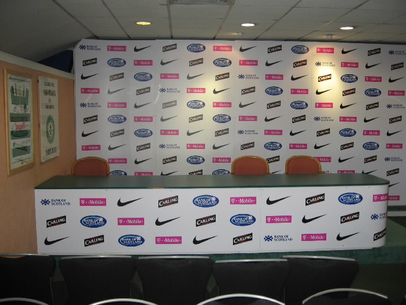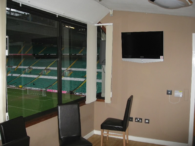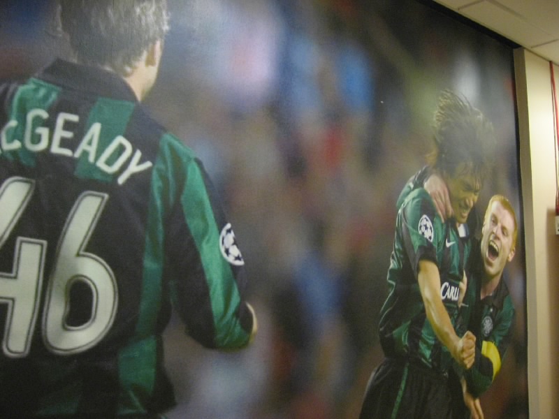 屋内へと戻る。通路には、大きな写真が飾ってあり、これは9月のアウェイでのマンU戦で俊輔がフリーキックを決めた時の写真だね。こんな風に写真が飾ってあるということは、俊輔の活躍が認められているということ。嬉しいね。VIPルームへと到着。部屋はシンプルだが、液晶モニタがあって寒いスコットランドでも快適に試合観戦ができる。ドリンクも飲み放題のようだし。こんなところで一度ゆったりと観戦したいものです。