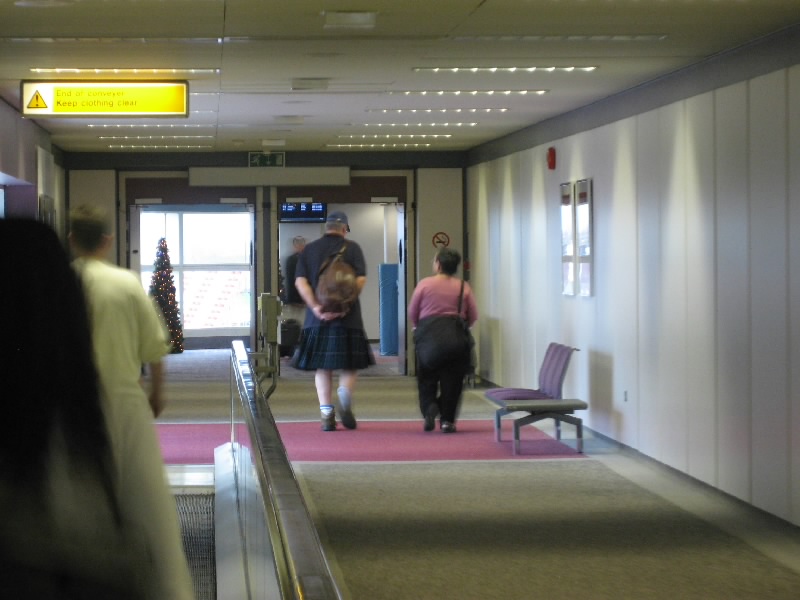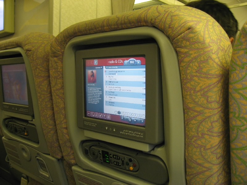 出発便の表示を見ると、ドバイ行きのEK026の表示が「GO TO GATE」に変わった。ではゲート前に行きましょうか。動く歩道を歩いていると、前の方にスコットランド風にスカートをはいた男の人がいる。うーん、そういうものとはいえ、何とも言えない違和感があるなあ。でかいオッサンだし、何よりスカートが短めでかわいいんだよね。女子高生の制服そのものに見える。ゲートに行くと、たくさんの人が搭乗を待っている状態。座るところも無いのでしばらくゲート近くで待っていると、搭乗開始。窓際の3列の席となったが、もう一席は結局誰も来ず。空き席になったので、ゆったりとできてラッキーだ。