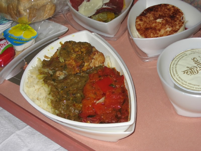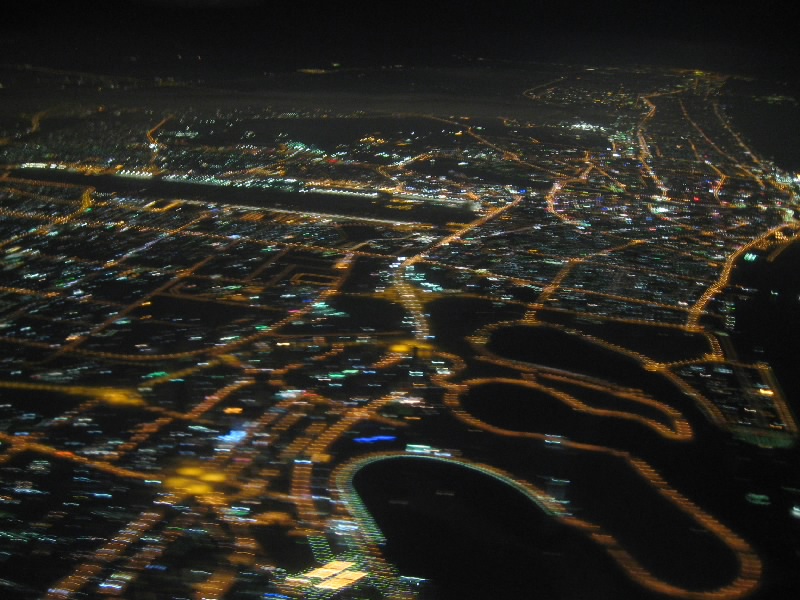 EK026はグラスゴーを無事に離陸し、ドバイへと向かう。エンターテインメントは行きと同じだが、まだまだ全部制覇していないのでゆっくり楽しめる。まずはドリンクサービスだが、さっきギネスを飲んだばかりなのでここはソフトドリンクですっきりしましょう。さて、映画でも楽しみますか。行きは邦画ばかりみていたので、噂の「ダビンチコード」でもみましょうか。日本語版が無く、英語版で字幕が中国語のパターンで見てみよう。本は一度読んでいるので、かなり本の内容に近いな、と思いながらみていたが、ちょっと分かりづらいなあと思っているうちにいつの間にか眠りに落ちてしまった・・・結局3分の1くらいしかみることができず。目が覚めると、ちょうど機内食がスタート。フィッシュかチキンなので、それぞれ頼む。フィッシュはティラピアという白身魚で、トマト風味のソースとブロッコリーがミックスされたマッシュポテトがおいしい。チキンはアラブ風のスパイシーな味付けで、付け合せのトマトとライスもおいしい。何度もいうが、エミレーツ、いいね。機内食がゆっくりおいしく楽しめるのは、旅の楽しみだしね。食後は音楽聴いたり日記書いたり、うとうとしたりしながら過ごす。途中、アイスクリームでスッキリ。ドバイ時間の深夜1時を過ぎた頃、飛行機は次第に高度を下げはじめた。予定より約1時間半遅れでドバイ国際空港に到着だ。