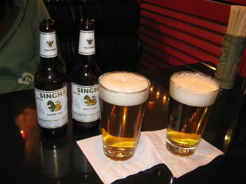 さすがに今日は遠出する気分ではないので、ホテルの下にあるレストランへと行こう。結構良さそうだしね。DragonFishというそのお店は、アジアンフードのお店。中に入り、メニューをもらう。さあて、何にしましょうか。なぜか値段が微妙に違うメニューに戸惑いながら、なんとか3品オーダー。まずはシンハビールで乾杯。疲れた体に染み渡るようだ。
