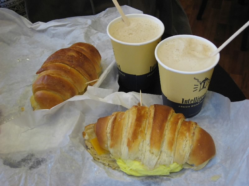 出発前に、コンシェルジェにセーフコフィールドへの行き方を確認。バスで簡単に行けるようだ。朝ごはんは、近くのサンドイッチカフェにしよう。朝なので、卵とチーズのサンドイッチ。パンはベーグルかクロワッサンかが選べるので、クロワッサンにしましょうか。あとはスモールのカフェラテ。さあて、どんなものが出てくるかな。準備ができたら名前を呼ばれるのだが、どうも自分の名前は通じないので「ICHIRO」と言ったら一発で通じた。さすがだね。しばらくして、ICHIROさん用のサンドイッチが完成。重いなあ。袋から出してみると、予想通りと言うか、巨大なクロワッサンに巨大なプレーンオムレツが挟まっていた。カフェラテもスモールなのにでかい。まあまあ、これがアメリカさ。おいしいんだけれど、あまりの量に超満腹。朝から栄養補給はばっちりということで($14.02)。