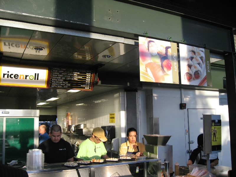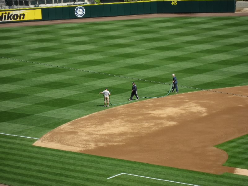 そろそろおなかがすいてきた。買い出しに行きますか。やはりセーフコフィールドと言えば、イチロールでしょう。ちょうど近くにスシの出店があり、ここでイチロール・コンボをゲット。イチロールとカリフォルニア巻きとにぎりのセットだ。これにペットボトルのウーロン茶を買い、ここはこれで完璧。あとはホットドッグかな。いくつか種類があるようだが、せっかくなので一番長いのにしましょう。席に戻り、まずはホットドッグ。ケチャップとマスタードもちゃんとつけてね。うん、まあまあだな。ヤンキーススタジアムのホットドッグよりはうまいぞ。続いてスシ。イチロールも他のものも、球場ということを考えるとなかなかのもの。アメリカのスシのレベルも相当上がっているということだね。