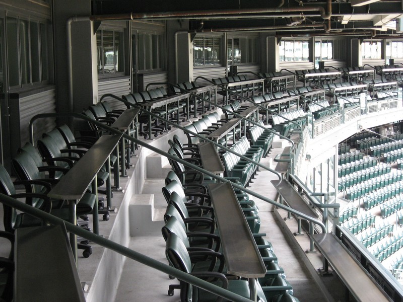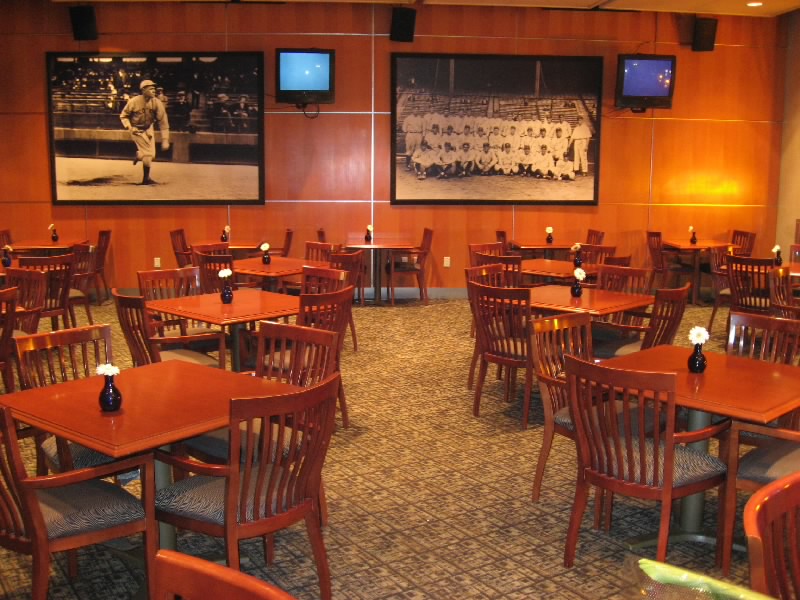 そしてVIPルームに到着。2階席の上段、内野席をぐるっと回る位置に液晶テレビにソファーに冷蔵庫つきの部屋がたくさん並んでいるのだが、各部屋には往年の名選手の名前が付いている。そのうちの一つがなんと、Sadaharu Oh。世界の王だ。メジャーのスタジアムにも名前があるなんて、さすが世界の王貞治だね。他には、ベーブルースの部屋なんかもあった。ずっと将来には、イチローの部屋なんてのもできるかもしれないね。