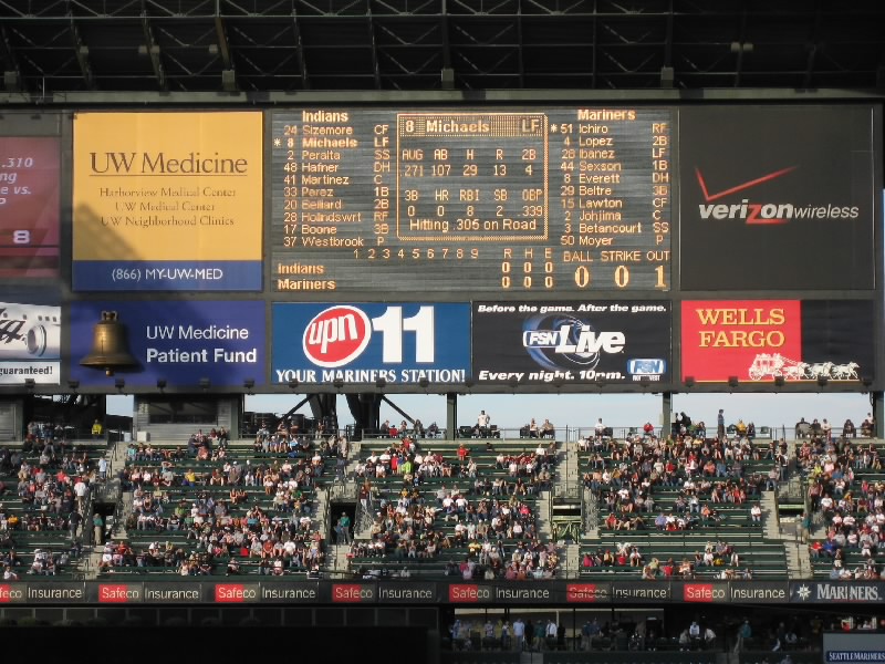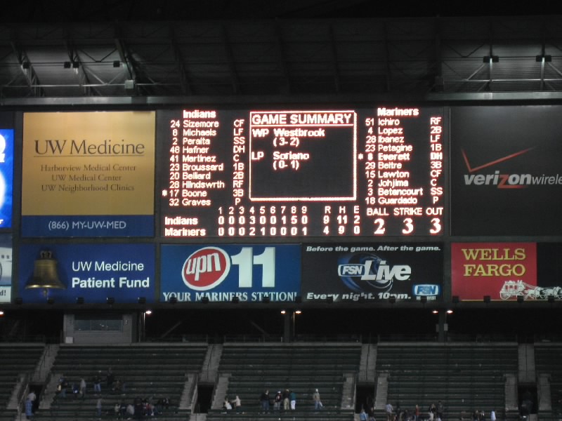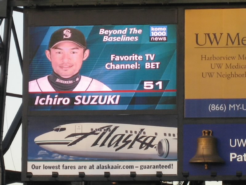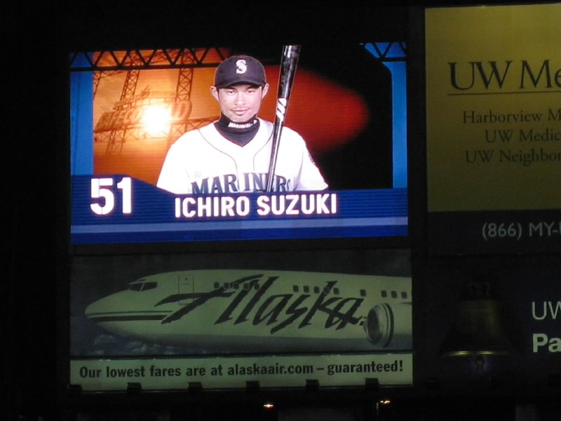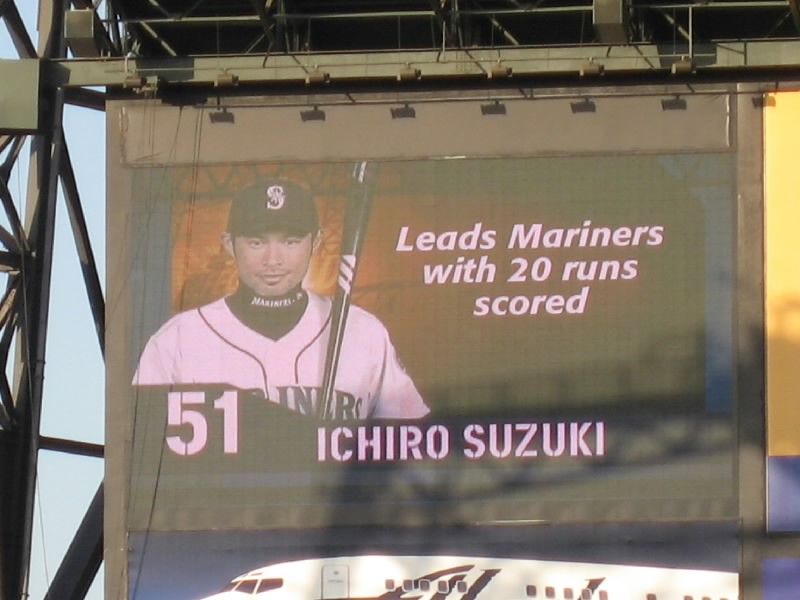 とはいえ前半は、他にはこれといった見せ場がない。イチローも城島も、ヒットが出ないし特に目立ったところはなかった。しかもインディアンスに先制点をとられ、どうも劣勢だ。それでも打席にイチローが入るときは、他のだれよりも拍手が大きくなる。マリナーズの中でもっとも人気のある選手といっても過言ではないだろう。