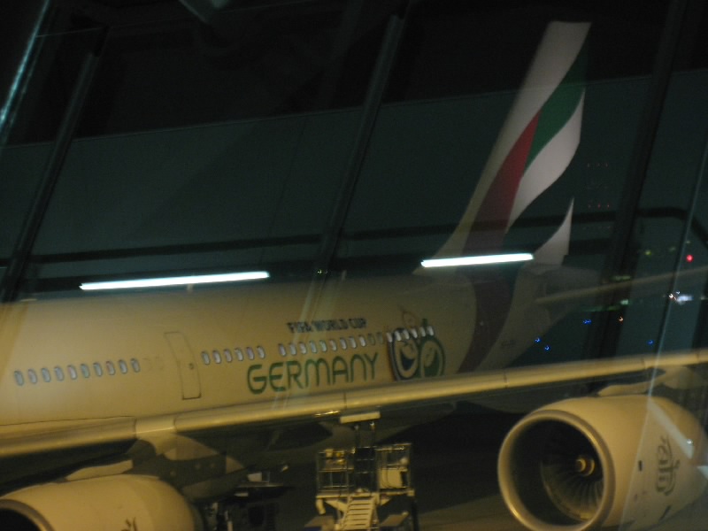 超多忙の一日を終え、19時に会社からダッシュ。家に帰って速攻でシャワーを浴び、20時前に出発だ。御堂筋からラピートに乗り換え、ようやくほっと一息だ。21時過ぎに空港到着。あまりこの時間に来ることはないが、それなりに人がいる。国際線のチェックインカウンターへいくと、いましたブルーのユニフォーム。もはやグループリーグ突破の可能性はほとんどなくなったとはいえ、かすかな可能性にかける思いは皆同じだ。初となるエミレーツ航空にチェックイン。ドバイまでとデュッセルドルフまで、どちらも2人掛けの窓際をゲットできたのでいいのだが、問題は荷物。機内持ち込みのつもりだったのだが、持ち込みの重量制限がありそれを軽くオーバーしていたのだ。なんとか持ち込みたかったが、エミレーツはかなり規定が厳しいらしい。仕方がないので2つのうち1つに重いものを集中させて預け、1つはなんとか持ち込み制限をクリア。こういうところは年々厳しくなるなあ。まあ、なにはともあれチェックインは完了。