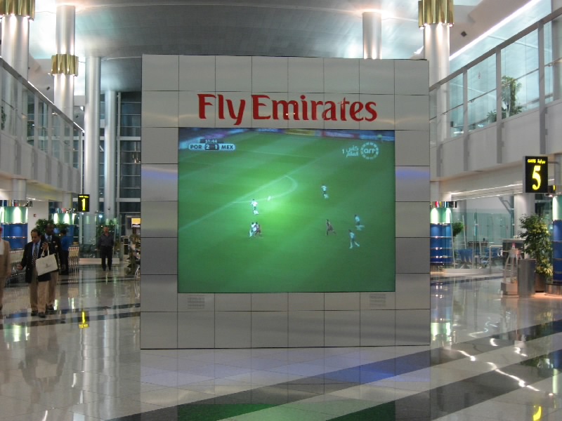 2001年以来、久しぶりのドバイ国際空港。明るくきれいなところは変わらないが、今はワールドカップ期間中ということもあり、大きな液晶画面ではポルトガル-メキシコの試合が流れているので見ながらしばし過ごす。日本時間は朝なので、妙に眠い。2時間ほどはそのままほとんど動けず、うとうとしたりぼーっとしたり。しばらくすると小腹がすいてきたので、関空ローソンで買ったおにぎりをおいしくいただきましょう。6時半となり、そろそろ動きますか。まだ出発ゲートが表示されていないので、とりあえずは免税店エリアへ。