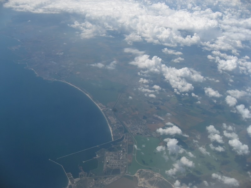 いつも通り、離陸を感じることなくいつまにやら雲の上。膝の上に機内食メニューが配られていた。6時間ほどのフライトだが、朝ごはんと昼ごはんがあるようで、さっそく朝ごはん。オレンジジュースに温かいクロワッサン、フルーツとチョコマフィン。どれも妙においしく、さらっと食べてしまった。眼下には荒涼としたイランの大地が広がる。飛行機は北西に向け、順調に飛んでいく。しばらくはパーソナルビデオで、昨日のオランダ-アルゼンチンや、コートジボワール-セルビアモンテネグロを楽しもう。しばらくすると、眼下には黒海。内海とは思えないほど、水平線が遠くに広がっている。それがちょうどルーマニアへとさしかかるころ、スナックタイム。チーズ味のビスケットが配られ、それに合わせてビールと白ワインで乾杯。この後昼食もあるというのに、サービス満点だな。ビールもハイネケンとバドワイザーから選べるしね。これもあっさり完食。
