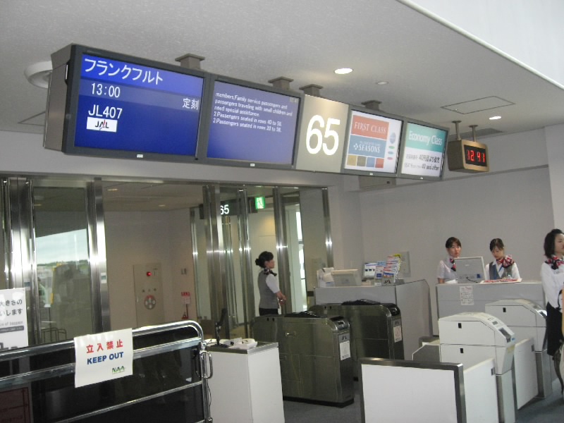 とうとうこの日が来た。2度に渡る延期を経て、今回も厳しいスケジュールの中ではあるが会社の夏休み制度が7〜9月の任意の3日間の選択になったことを追い風に、なんとか4日間の休みを確保。海の日と週末を合わせ、7日間と長くはないが予定を組むことができた。あと半年しか猶予のないマイレージ特典ファーストクラスの旅、ようやく現実のものとなった。2004年のシンガポールからアイルランド、バルセロナ、2005年の南イタリア、ニューヨーク、そして年末のトスカーナ。これに宮古島やら台湾やら全国出張やら、さらにいろんなボーナスマイルを積み重ねてやっと得た12万マイルの権利、一時はどうなることかと思ったが・・・今にも降りだしそうな曇り空の中、7時過ぎに家を出て伊丹空港へと向かう。8時過ぎに空港につき、成田行きのカウンターへ。ふだんは近づくことのないファーストクラスのカウンターへと行き、チェックインを行う。憧れの赤い帯のついたフランクフルトまでのチケットを受け取り、出発ゲートへ。もう成田行きの搭乗は始まっているので、すぐに乗り込む。待つことも慌てることもない、完璧なタイミングだ。いくつか空席は見えるが、ほぼ満席に近い。平日でも旅に出る人がたくさんいるんだねえ。1時間ほどで成田に到着。今日はなんといってもファーストクラスなので、早く専用ラウンジに行きたい。少しの買い物と出国審査を済ませ、まずはサテライトビルにあるラウンジへ。