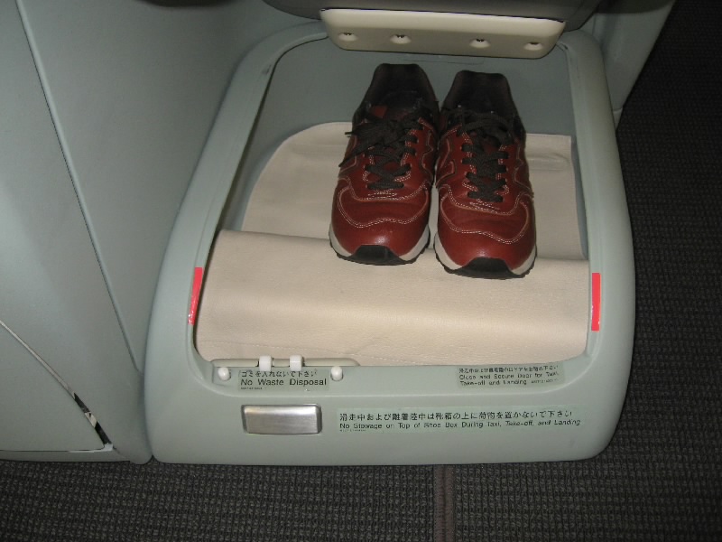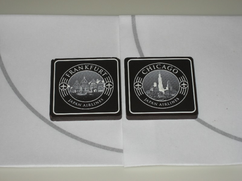 座席につくと、やはり広い。革張りの席そのものも広いし、前後左右が思いっきりゆったりしている。まずいつものようなぺらぺらではなく、しっかりとした柔らかい毛布をいただく。そしてリラックスするためと、ジャージのような着替えをもらった。さらにオーディオ用のヘッドフォン、BOSE製で耳全体を覆い、機内の音をシャットアウトするらしい。うーん、すごい。エコノミーとビジネスの差も大きいと思うが、ビジネスとファーストはさらにその差が大きい気がする。それにしても9席中8席が埋まっており、我々マイラー以外はどこかの会社のえらいさんか、資産家なのか、とにかく100万以上のお金を払って乗っている人たちなんだね。しばらくして、エコノミーの人たちも乗り終えたようで、そろそろ出発だ。我々はすでにリラックスしているので半分寝ている状態だが、JAL407便はほぼ定刻通り、フランクフルトに向けて出発した。