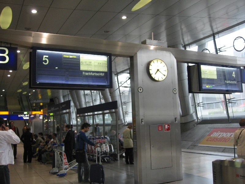 去年のワールドカップ以来、1年ぶりのドイツだ。長い距離を歩き、入国審査へ。ドイツの係員らしく、日本出国のスタンプを確認した上で、キッチリとスタンプを押してくれる。適当に空いているところに押すイタリアの係員とは大違いだな。続いてバゲッジクレームへ。ファーストクラスだけあって、やはり荷物も早めに出てきた。何から何まで、特別扱いというわけだ。やはり、なかなか庶民には手の出ない世界だね・・・あとは帰り、楽しみにしておこう。出発ロビーへと入り、これでドイツの人だ。手持ちのユーロが多少あるので、とりあえず今日は中央駅まで行きましょう。駅がどこにあるかよく分からなかったが、到着したのはターミナル2なので、ターミナル1までまずシャトルバスで動く。すると目の前に鉄道駅があった。98年にここに来たときは地下の駅から乗った記憶があるのだが、どうも地下は近郊路線のみで、地上駅がICEなども停車する長距離路線駅。中央駅までは近いのだがICEが通る関係で、地上駅のようだ。去年のワールドカップで、このあたりの様子も変わったんだろうね。この駅からは、ドイツ各地へのICEが多数出ているようで、ベルリンやケルン、ハンブルグやミュンヘンなど、ドイツのどこに行くのも便利。さすがドイツ、という感じだ。自動券売機での買い方がよく分からないので(去年も買ったはずだが・・・)、カウンターで中央駅までのチケットをゲット(@3.55E)。ICEには乗れないので、ローカル電車に乗ってフランクフルト中央駅へ。ようやくここまでたどり着いたぞ。少し雨がぱらぱらと降り始めて肌寒いが、あとはホテルまで。駅を出て数百メートルほど歩くと、今日のホテルRamada Frankfurt City Centerに到着。