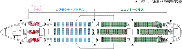 ボーイング777-300ER(赤いところが我々の席)