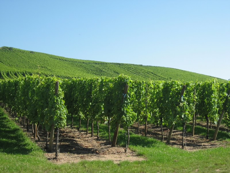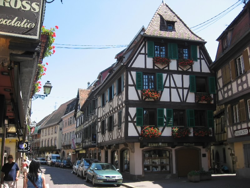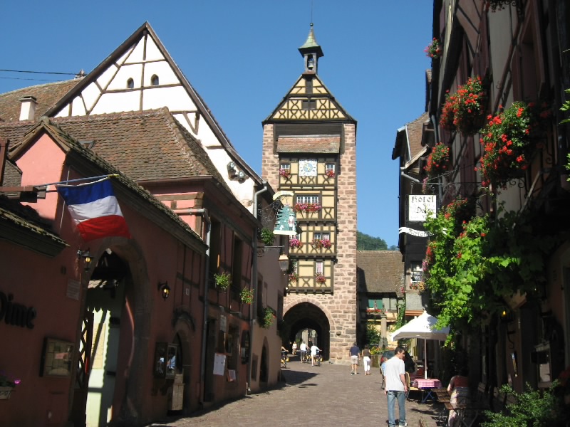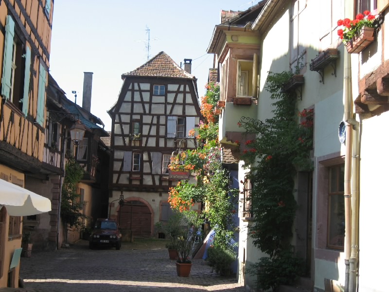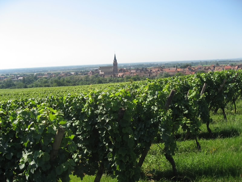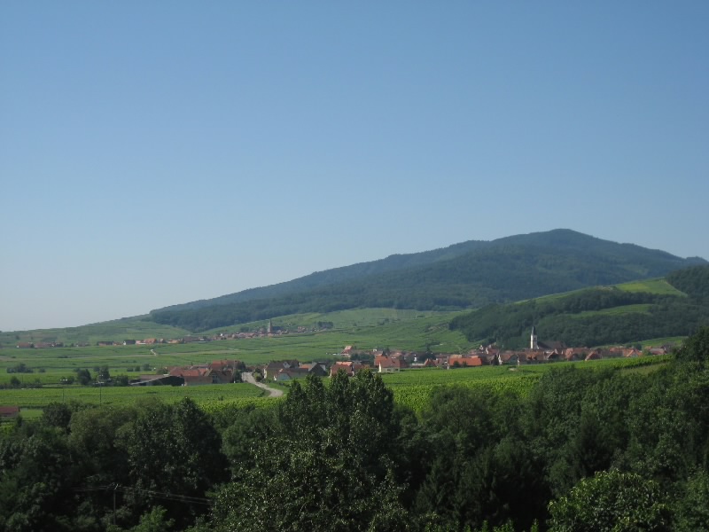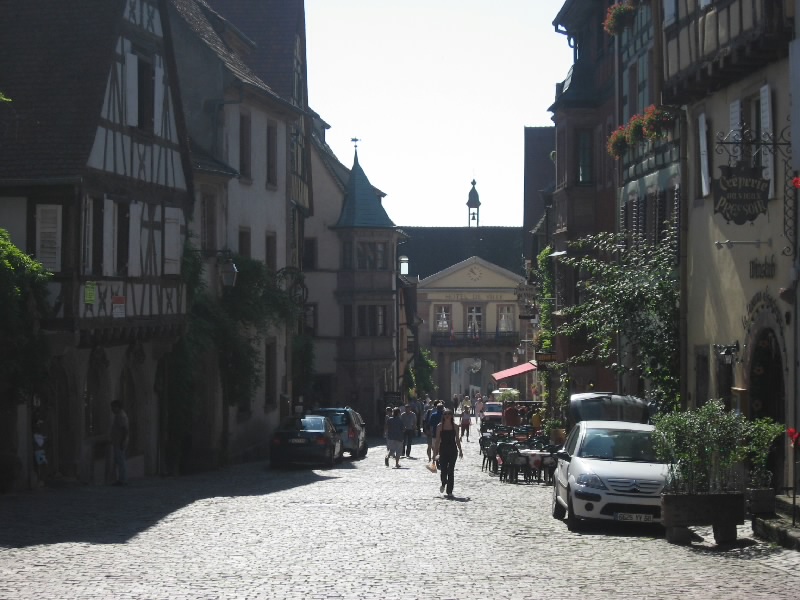 さて、そろそろ行きますか。今日はガソリンをいれたいので100Eキャッシングし、ストラスブール方面へ向けて出発だ。リクビールを出てすぐのぶどう畑や、少し丘になったところなど景色のいいところで車を停め、写真を撮りながら走る。アルザスのワイン街道には、小さな村が点在している。せっかくなので、広い高速を行くよりもぶどう畑の中の道を通っていろんな街を見ながら行こう。ウナビール(Hunawihr)への分岐を越え、しばらく行くと昨日来たリボーヴィレ。今日も観光客でにぎわっているようだ。ここからは、小さい村々をつなげるように走る。