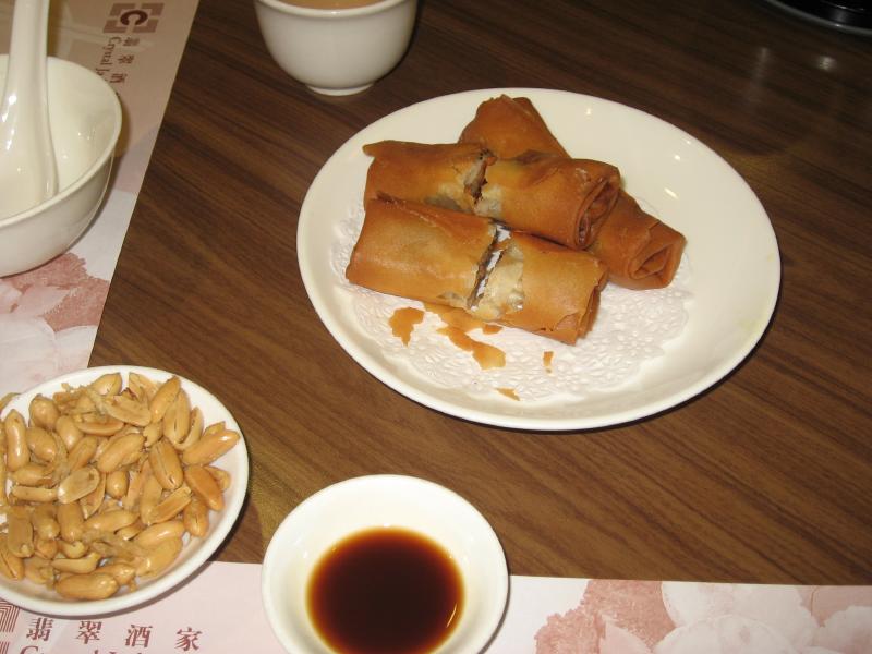 お昼ごはんはどうしようか。それほどお腹は減っていないが、時間的にはそろそろ食べておいたほうがいいかな。空港のレストラン街を歩いていると、飲茶やさんがあった。おいしい飲茶ももう食べおさめなので、ここにしましょうか。中に入り、まずはプーアル茶を頂く。今日のつまみは茹でではなく、普通のピーナツだ。飲茶は時間的に売り切れのものも結構あったが、まずは春巻きを頂く。ここのお店もウスターソースが出てきたので、春巻きにウスターソースというのはシンガポールではスタンダードなのかな。そして蒸し物が一気に登場。海老餃子やシュウマイは想像通りのおいしさで、空港でもこのレベルが食べられれば充分。潮州風蒸し餃子は野菜がたっぷり入っていて歯応えもよくてなかなかおいしい。もう一つは海鮮餃子だが、アスパラガスとワサビが入っていて、たまたまワサビ多めをたべてしまってかなりツンときた。でもおいしいよ。出発までのひとときを、こんな風にゆったりと過ごせるのはいいね(29.66$)。ごちそうさまでした。