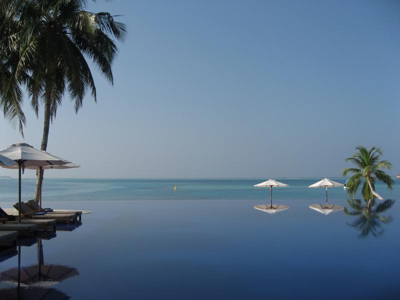 プールから海を見る