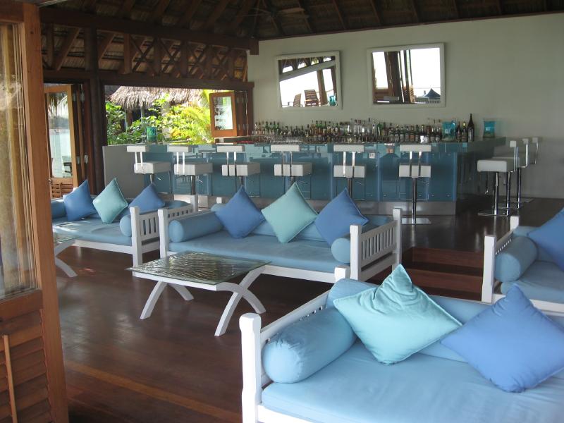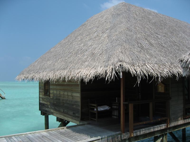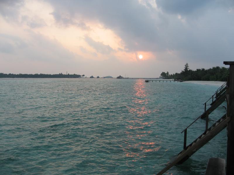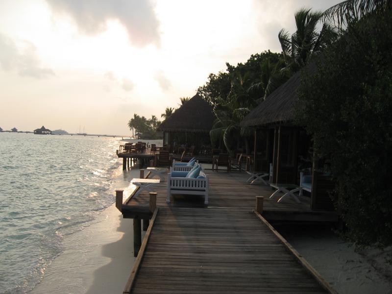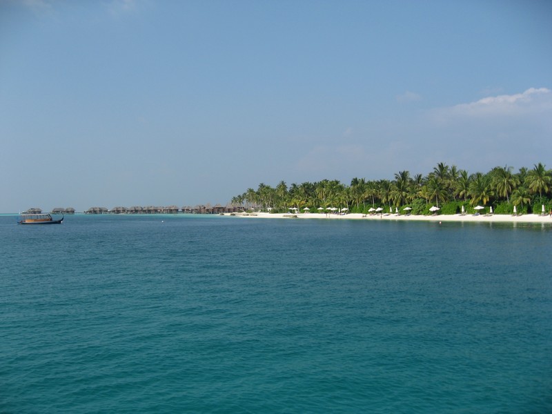 それにしても名残惜しい。でも行かなければ・・・水上コテージに別れを告げ、フロントに部屋を出たことを告げる。これでもうあの部屋には戻れないのか・・・さて、そうは言っても帰りの水上飛行機のチェックインまでまだ4時間以上ある。ドーニに乗ってメイン島へと向かい、まずはお土産でも買いますか。フロント横のちょっとしたお店でチョコレートや絵葉書などをゲット。お店のお姉さんには「もう帰るの」とビックリされてしまった。できるものなら帰りたくないのだが・・・