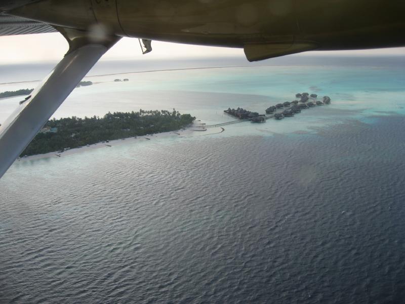 少し遅れているようだが、17時をすぎたころ金色のコンラッド専用機が到着。これに乗ってここにきたのはほんの3日前。到着した時の感動がよみがえってくるなあ。しばらくして準備ができたようで、飛行機へと乗り込む。左側が1人席だが、離陸の時にホテルが見えるのでこちらに座ろう。他のファミリーも乗せ、17時30分を少し過ぎた頃、プロペラが回りだした。ああ、とうとう出発か・・・