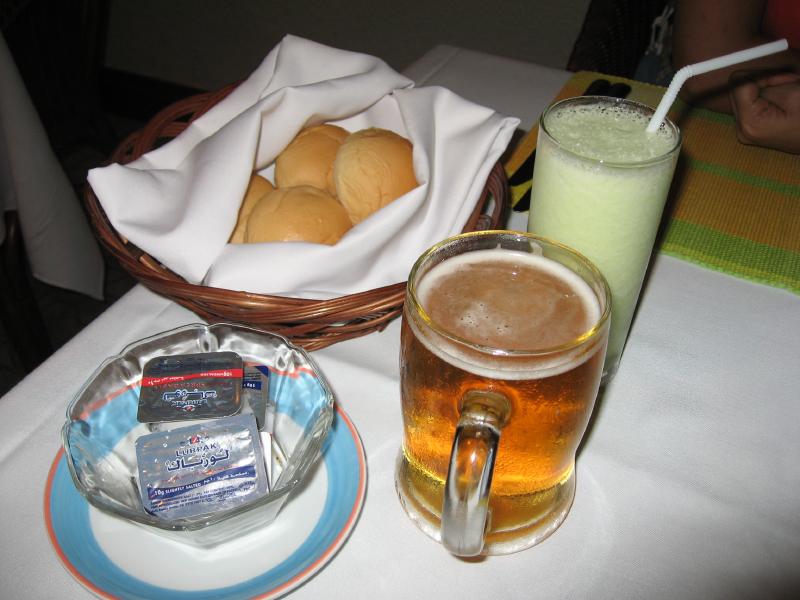 1時間ほどたった。お腹もすいたし、晩ごはんにしましょうか。3日前に朝ごはんを食べた場所が今はカフェになっているので、ここに入りましょう。同じように飛行機の出発を待っていると思われる人で結構賑わっている。さて、喉も渇いたし、まずはビールで喉を潤しますか。ふう、うまい。しばらくして、チキンライスとナシゴレン登場。シンガポールやインドネシアで食べるのとは比べるべくも無いが、それなりにおいしいな。サラダも頼んだのが、これはドレッシングかかりすぎ。まあ、ゆったりと時間が過ごせるのでこれもいいかな。