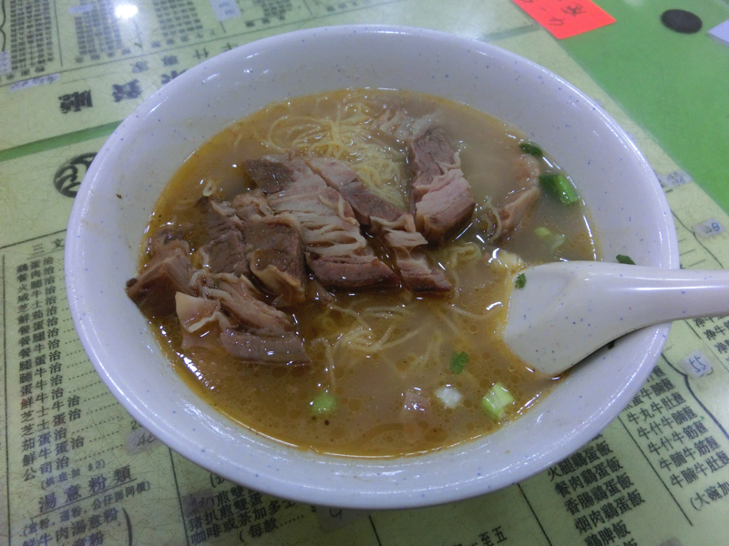 とにかく昼ごはん外に出ると、雨と風がかわるがわる強くなる感じで、歩きづらいくらい。とりあえずは尖沙咀の時代広場へ。ここの下にマーケットがあるので見てみるが、ごはんがたべられそうなところはないなあ。上のレストランはちょっとガチだし・・・会社用のお土産だけ買おう(79.5)。そこから少し西へ歩くと、カジュアルなお店がいくつか並んでいたので一人で入りやすそうなお店に入ってみる。お店のおっちゃんに促されるまま席に着き、何にしようかな。まずはシンプルに、牛肉麺をいただきましょう。しばらくしてでてきたものは、牛骨の出汁がしっかりしたスープがうまい。麺はこんなもんかな。でもこれが45HK$、つまり700円近いので、20年前より倍くらいに物価は上がっているかもね。ごちそうさまでした。お店を出て、次は明日の出勤下見。途中、雨が強くなってきたが、なんとか会社のあるハーバーシティに到着。このあたりはショッピングモールやオフィスビルがつながっているので、入ってしまえばあとは雨知らず。でもわかりづらいな・・・かなり歩いたところで、ようやくオフィス棟のエレベーターを発見。会社名も書いてあったし、下見しておいてよかった。