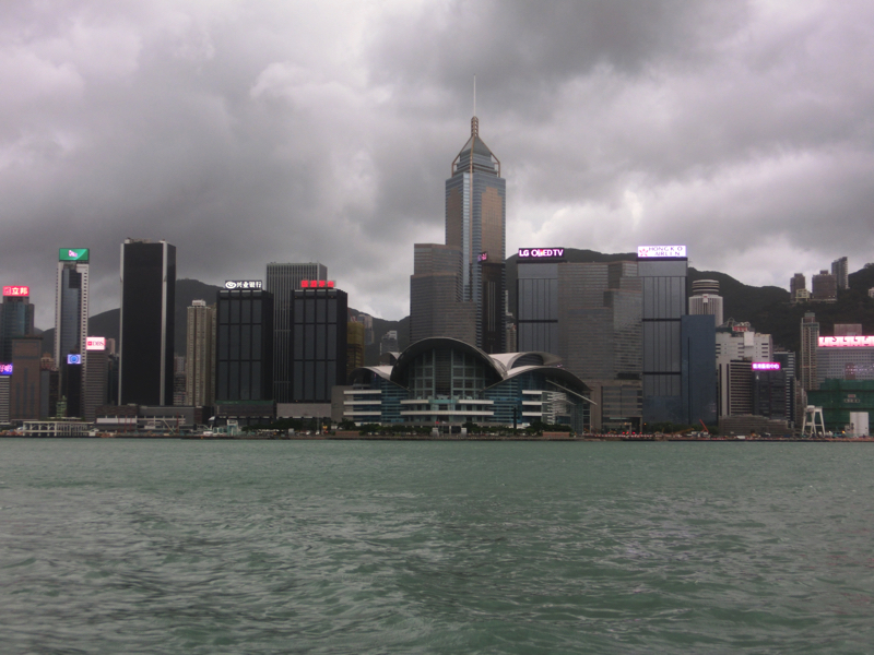 飛行機は徐々に高度を下げていき、海の上に造られた香港国際空港に到着。どんより曇り空で雨も降っているが、そんなに強くもなさそうだ。飛行機を出るときに少し外気に触れるが、そんなに暑くもないようだ。このくらいだったら問題なさそうだが、街はどうだろうか。長い通路を歩き、トラムに乗って入国審査まで移動。人は多いがカウンターも多いので、そんなに待たずに進むのはロンドンとは違うところ。荷物を受け取り税関を抜け、無事に20年ぶりに香港の人になりました。