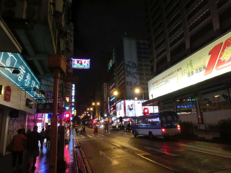 ハーバーシティからホテルまでの道を確認していると、雨も風もましになってきた。今のうちに、ビクトリア湾の景色を見に行こう。20年前に来た時はまだ中国返還前で、ここで花火を見たなあ。まだまだ工事中のところも多いが、海沿いに来るとたくさんの観光客がいました。やっぱりこの景色を見ると、香港を感じる。でも昔はもっと日系企業の広告が出ていたと思うが、今はあんまりない。その後はしばらく街をうろうろし、ホテルで少し休憩。