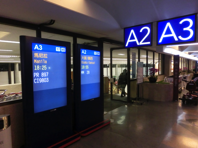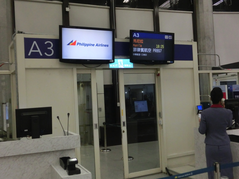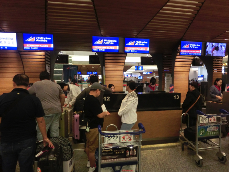 30分ほどで空港に到着。少し雨が降っているかも。荷物を預ける用に整理し、着替えて楽になった。では一路マニラに向かいましょう。マニラまではフィリピン航空。チェックインの列には、ゴルフバックを抱えた人が多い。ここも出張ぽい感じの人はあまり見当たらない。まあ自分も着替えて楽な格好なので、日本人が台湾からマニラ行きに一人で乗っているというちょっとなぞの乗客かも。入国審査を過ぎ、ゲートまで。途中いくつかおみやげ屋さんを見たが、まだ途中だし特に買いたいものはないかな。少し時間があるので、カフェで少しゆっくりしますか。WiFiも使えるし、メールチェックなどしばらくいろいろと(130)。
