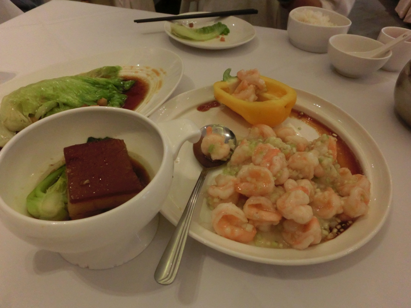 昼ごはんはそのSさんと近くの中華へ。眉州東坡というお店で人気店らしい。やっぱりこういうお店は地元の人と来るのがいい。好きなものを頼めといわれたが、よくわからないよね・・でもメニューが写真満載なので良さげなものを選び、Sさんにも選んでいただきました。まずは野菜、青菜はよく食べるのでここはロメインレタスの炒め物。うまいです。次はお店の名前にもなっている東坡肉、これは柔らかくてトロトロでうまい。このタレもごはんとよく合うしね。そしてエビのあっさり炒め物、中華はやっぱり海老がうまいな。ネギたっぷりでさっぱりした味わいがおいしいです。そして麻辣牛肉煮、最初に頼もうとしていた牛肉料理がちょっと辛すぎるということでこれにしたのだが、少しピリ辛で山椒が効いていてなかなかの美味。これでちょうど満腹、ごちそうさまでした。