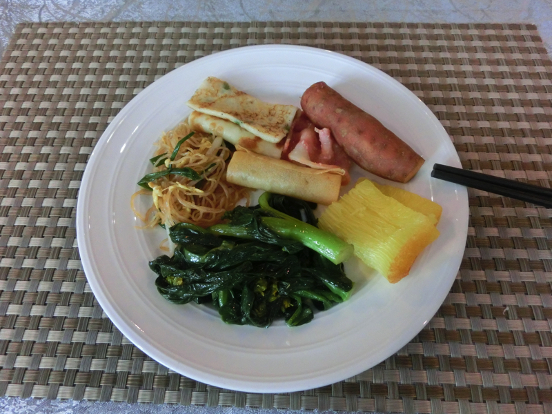 このホテルは、この旅初の朝ごはん付き。7時過ぎに一階のレストランへと行くと、もうすでに多くの人が食事中。結構朝早いのね。青菜炒めや春巻き、肉まんや焼きそばなど中華風のおかず中心にいろいろある。いつも通り、少しずついろいろといただきましょう。やっぱり青菜炒めが美味しいな。あとは冬瓜の煮物のようなの、これもうまい。いろいろ食べて、ごちそうさまでした。