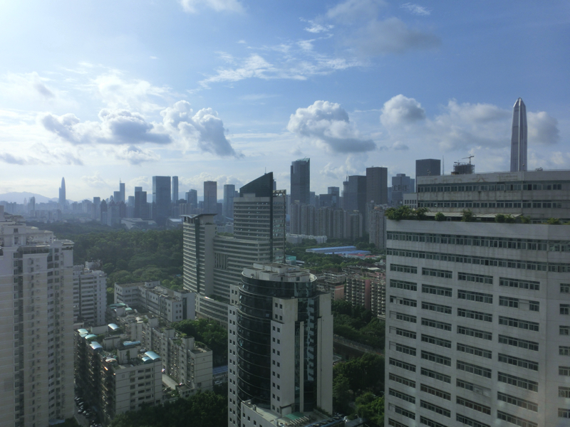 部屋に戻ってちょっとのんびり。外をみると、今日もいい天気だ。ここ深圳は高いビルがたくさん並んでいるが、この景色はほんの20年くらいでできあがったもの。中国の中でも、特に発展した街なんだろうな。8時半を過ぎ、そろそろ行きますか。フロントに降り、チェックアウトするがやっぱりここでも英語が通じない。単に領収書が欲しいとかミニバー使ってないとかそのくらいなのに・・それは通じてくれよ。