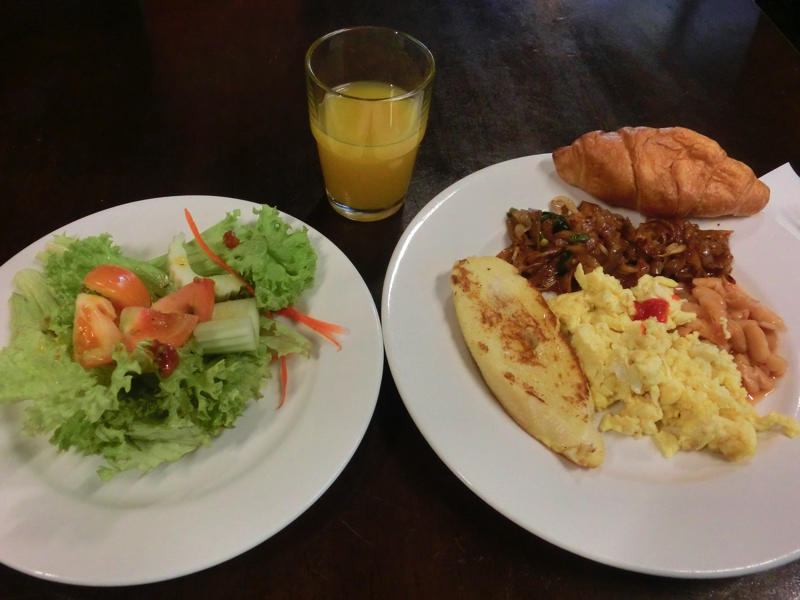 7時半ごろ起床。よく寝ました。たっぷりのお湯でさっぱりして、朝ごはんへと向かう。5階にあるといわれたので行ってみると、一旦ビルの外にでて隣のビルへ。そしてそこにあるカフェが朝ごはん場所で、奥のほうにビュッフェコーナーがありました。そんなに種類はないので一通りいただきましょう。普段は食べないフレンチトーストまで食べて、ごちそうさまでした。まあ一度食べられたからもういいかな(22)。