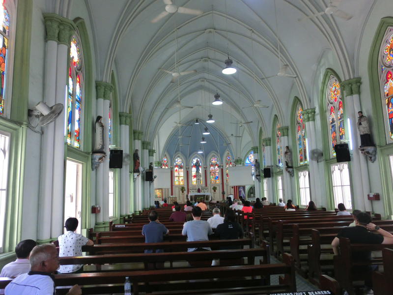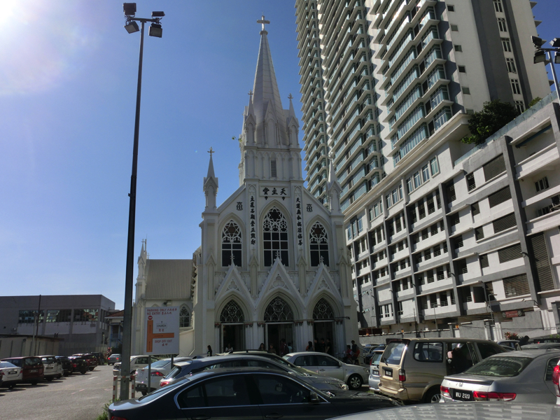 駅のエリアを出てしばらく行くと、教会がありました。日曜日で人も集まっているので、ちょっとお邪魔しておきましょう。海外に来ると、こういう教会がいろんなところにありますね。交通量の多い道を歩いていくと、クアラルンプール駅に到着。でも入り口は閉まっているし、周りに壁があるし利用されている感じがない。歩道橋に登ってみると、駅は見事に解体中。そうか、20年の歳月はメインステーションの場所をすっかり変えてしまうだけの時間があるんだね・・・でもこの辺りも、また整備されていくんだろうな。クアラルンプールは街のそこら中で大規模な再開発を行っているようで、また10年後、20年後には姿が変わっているんだろうな。その歩道橋を渡るとパサール・スニ駅、地下鉄とモノレールの両方が入っている駅。