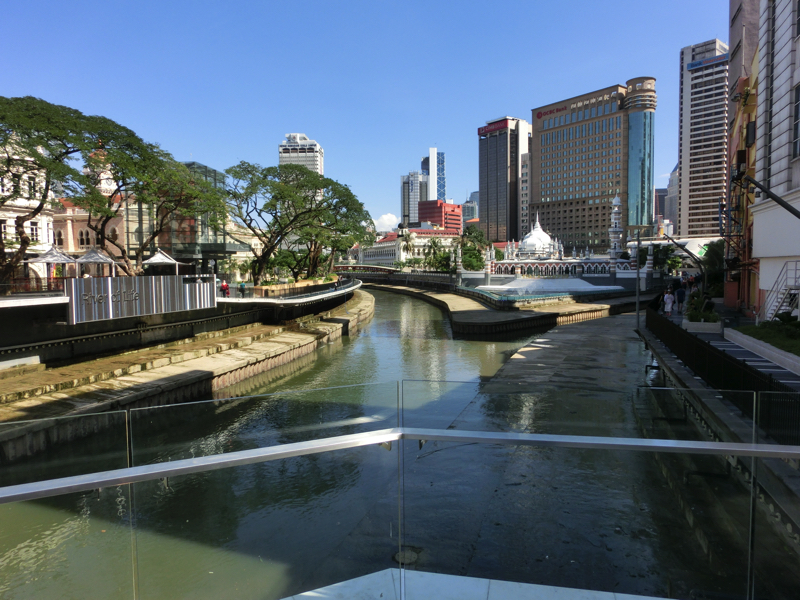 部屋に戻り、準備をして出かけますか。いい天気だし、暑くなりそうだ。明日からは会社なので、その場所確認。この辺りはビルがたくさん建っているし、それらがつながっているようなデザインなのでわかりづらいなあ。でもなんとか場所がわかり、わかってしまえばホテルからは10分もかからないので余裕だな。下見しておいてよかったです。そのままKLセントラル駅へと行ってみる。昨日着いたときは深夜でほとんどのお店が閉まっていたが、今はいろいろ開いているし人も多くにぎやかだ。この駅が今のクアラルンプールでのメインステーションとなっているようで、以前来た時に使ったクアラルンプール駅はどうなっているのかな。ここから一駅ほどの場所にあるので、散歩がてら行ってみよう。駅から道に出るのも、道やビルが重なっているのでちょっとわかりづらいな。でも歩いていると駅の構造がわかってきた。下の道に降り、散策開始。