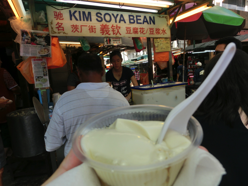 ではチャイナタウンに戻ろう。マーケットをぶらぶら歩き、中華街らしい赤い門をくぐるとそこは賑やかな通り。地元の人も観光客もたくさんいるようだ。まずは豆花を食べよう。屋台に人が集まっているのがいい感じだ。蜜は黒と白が選べるがたまには白にしてみよう。出来立ての豆花はまだ熱く、そこにショウガの効いた白蜜がかかっていてとてもおいしい。つるっとした食感、いいですね(1.8)。にぎやかなマーケットを歩き、前に泊まったスイスイン前まで来た。この近くにあったクラシカルな飲茶屋さんで食べた記憶があるが、もうどこかわからないな。