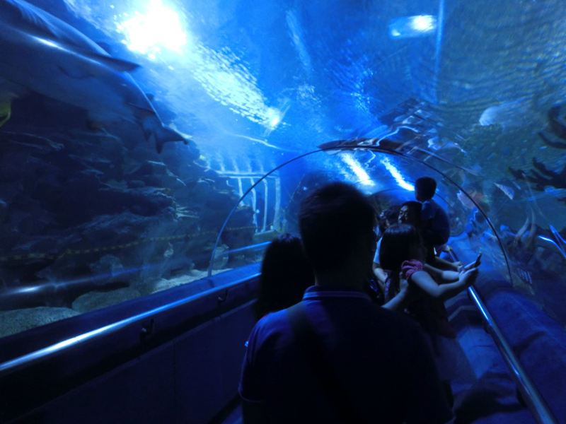 夜は屋台街に行きたいが、まだちょっと時間がある。KLCCそばにあるコンベンションセンター地下のKLCC水族館へと行ってみよう。それほど規模は大きくないが、熱帯魚やチンアナゴやクラゲなどがいい感じで見られるし、長いトンネルを通る水槽ではサメやエイやカメなどたくさん見られて、小一時間ほど十分に楽しめました(69)。