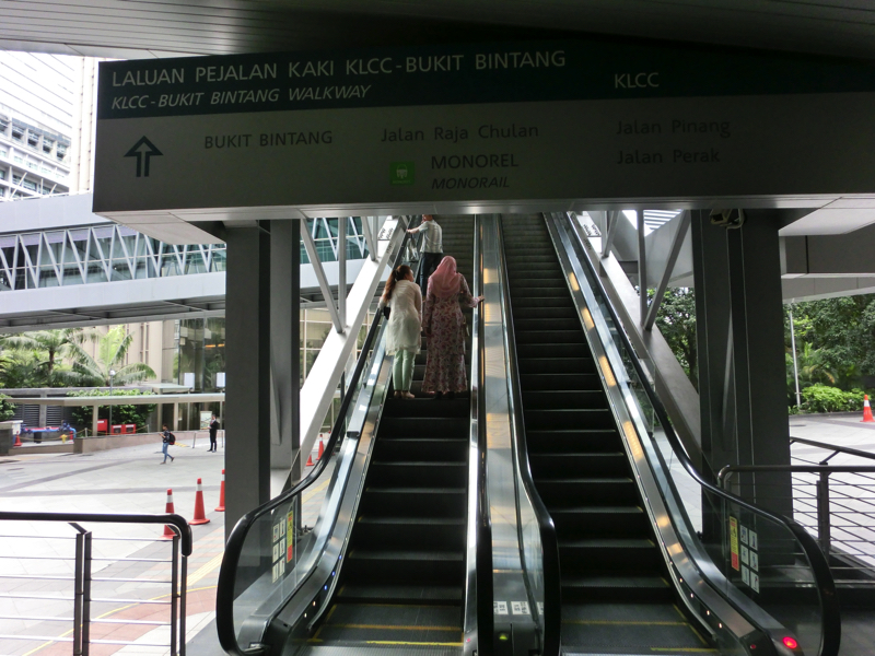 チャイナタウンを出て、パサール・スニ駅に戻ってきた。ここからは、LRTという鉄道にてKLCCへと向かう。この辺りは高架なので周りの景色を見ていけると思ったら、チャイナタウンが少し見えたと思ったら地下に入ってしまいました。あらら残念。車内はわりと混みあっているが、KLCC駅に着くと半分くらいは降りたかな。