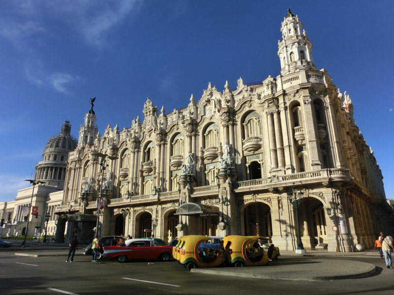 まず目につくのが、アリシア・アロンソ・ハバナ大劇場。19世紀に建築された、キューバにおけるクラシックバレーの聖地らしい。その横にあるのがカピトリオ。旧国会議事堂ということで、現在は改修中のために使われていないらしい。かなり大きな建物で、この丸い屋根部分はホテルの朝ごはん場所から見えたところだな、ここは100年近く前に建築されたものらしく、モデルとなったのはアメリカのホワイトハウス。当時は関係性がよかったのかな。ホテルの周りの荒れ具合も気になったが、きれいになるところはきれいになって、かつキューバらしさは失わないような発展が実現すればいいな。