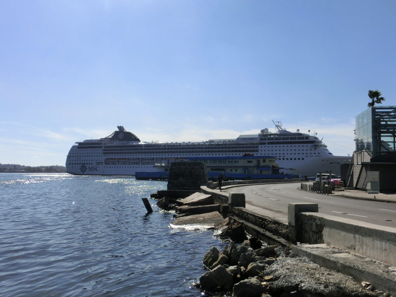その先にあるのがプンタ要塞、海を挟んで向かいにみえるのがモロ要塞。これらはハバナの街が造られるにあたって整備されたもので、ハバナ港や運河を守るためのもの。たくさんの砲台が見え、当時の様子を思わせる。ぼんやり海を見ていると、ひとりの旅行者っぽい女性が近くに来て写真を撮ってくれと。撮ってあげると、どかから来たかと。日本だというと、自分はコロンビアだと言い、そんな他愛無い世間話がいつの間にやら近くに葉巻を安く売っているお店があるから一緒に行かないかと。これは怪しい、葉巻に興味はないので行きませんというとあっさりその場は終了。そこで別れたが、その女性はしばらくして別の欧米風旅行者二人組に声をかけに行った。よく見ると同じような動きをしている男性2人もいて、なんだ客引きのグルではないか。危ない危ない、やっぱり声をかけてくる人には要注意だな。このまま海沿いをしばらく歩く。対岸にみえるのはカバーニャ要塞。これも歴史あるもので、同じくハバナの街を守っていたんだろう。内部にはチェゲバラに関する博物館などあるらしい。