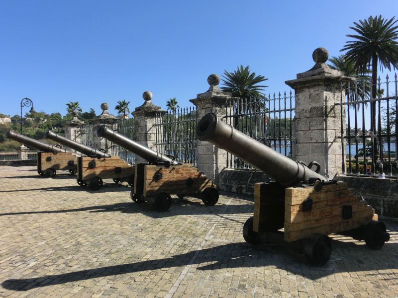 海沿い道を歩ききったところにあるのがフエルサ要塞。ここはハバナで最も古い要塞とだが、最初の建物は木造でそれはすでに焼失。現在の石造りの建物は要塞というよりもはや城のようで、その前にはたくさんの砲台が並べられている。このように、ハバナの海沿いにはこのように歴史的な建造物がたくさんあって見どころ満載だ。