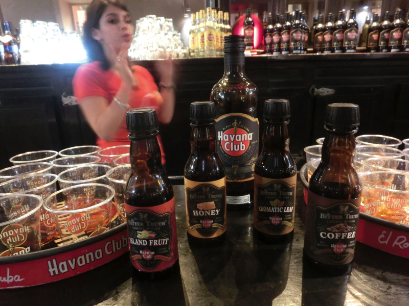 そのあとは発酵が進む樽を見学し、そこから一気に下まで降りるとそこは試飲コーナー。ハバナクラブの7年物をいただきました。アルコールがかなり強いが、黒糖のような深い香ばしさがある。まあ、家で飲む感じではないかな。ハバナクラブ用のエッセンスがあり、コーヒー、ハーブ、はちみつ、トロピカルフルーツの4種類がある。それをハバナクラブに少し入れるとまた風味が変わるとのことで、トロピカルフルーツを試してみる。パッションフルーツのような風味が加わり、また感じが変わる。このハバナクラブを使ったカクテルの作り方を紹介いただき、見学ツアーは終了。あとは買いたい人はショッピング。味見ができたので、これで十分です。楽しかったです。
