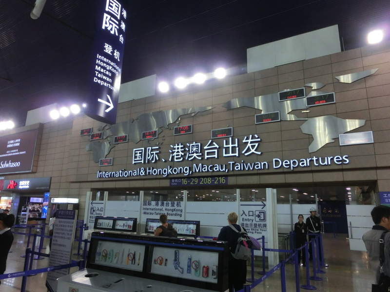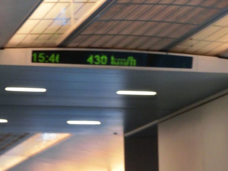 15時を過ぎ、そろそろ帰ろう。上海オフィスの皆さん、お世話になりました。忘れ物のないように。陜西南路駅で1号線にのり、人民広場駅で2号線に乗り換え。リニアの乗り換え駅である龍陽路駅までは7駅、ちょっと車内に変な人がいて少々騒然としてたけどね(4)。龍陽路駅でコンビニでもあればと思ったが、どうもなさそうなのでとにかく空港へと行こう。再びリニアだが(50)、帰りはさらに加速しなんと430キロ越えの表示が。行きは300キロ表示だったが、どういうこと?空港までの時間も同じように感じるが、実際430キロの時は少し車内にガタガタという振動を感じ、やっぱり行きとは違うようだ。空港駅に到着し、出発ターミナルへの途中にファミリーマート発見、ここでスーツケースがちょうど収まる分のカップ麺を追加購入。これでお土産はばっちりだ(25.2)。